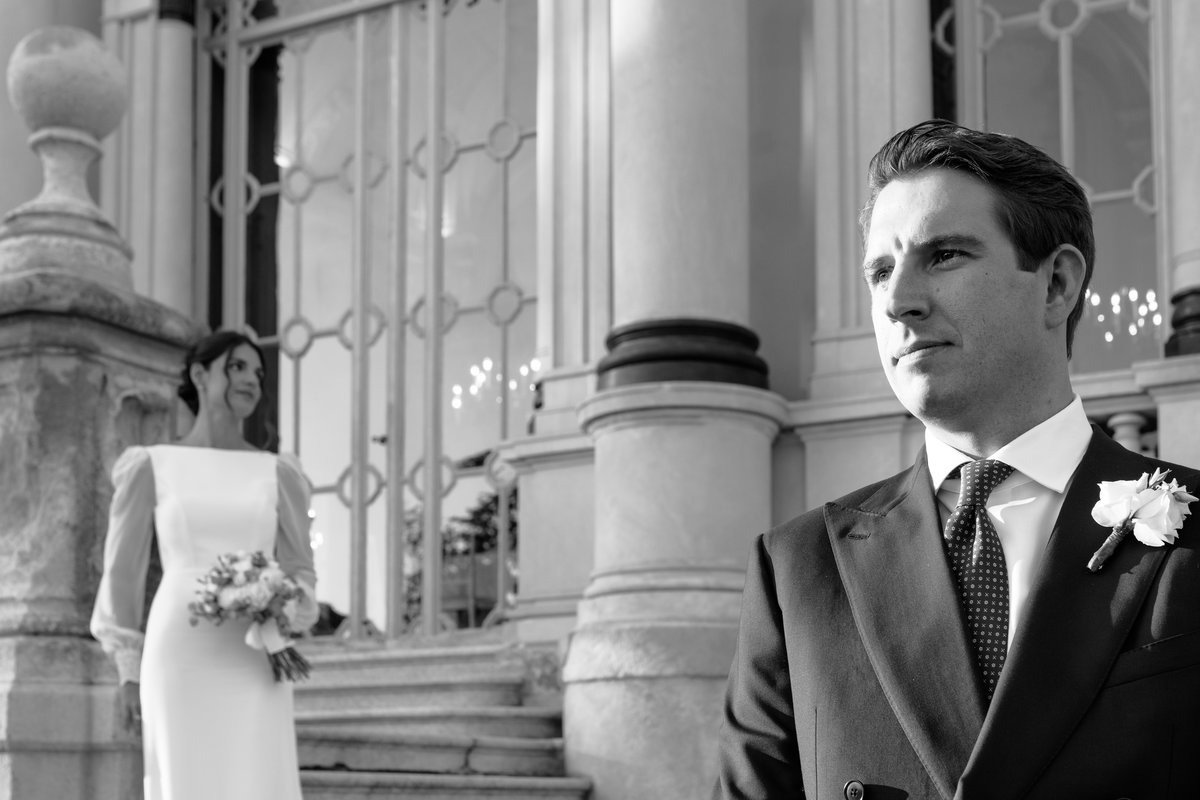 Il momento più elegante della giornata è stato proprio quello dedicato ai ritratti di coppia. l’architettura esterna della villa e i suoi spazi ordinati sono stati sfruttati al massimo soprattutto la facciata e le scale, tutto per costruire immagini eleganti e coerenti con lo stile del matrimonio.