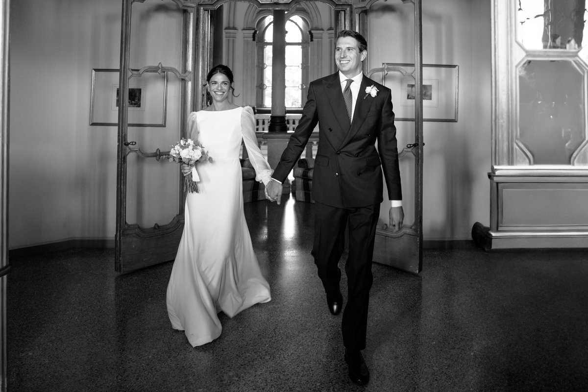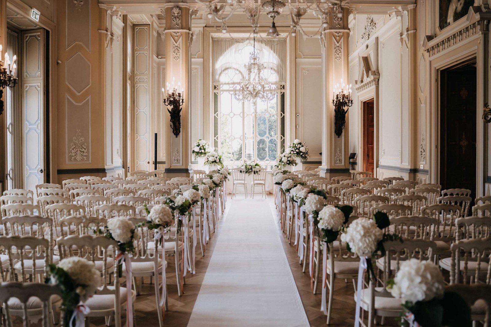 Le sale storiche, i lampadari, le pareti decorate e la luce naturale filtrata dalle grandi finestre hanno creato un contesto perfetto per un matrimonio di questo genere.